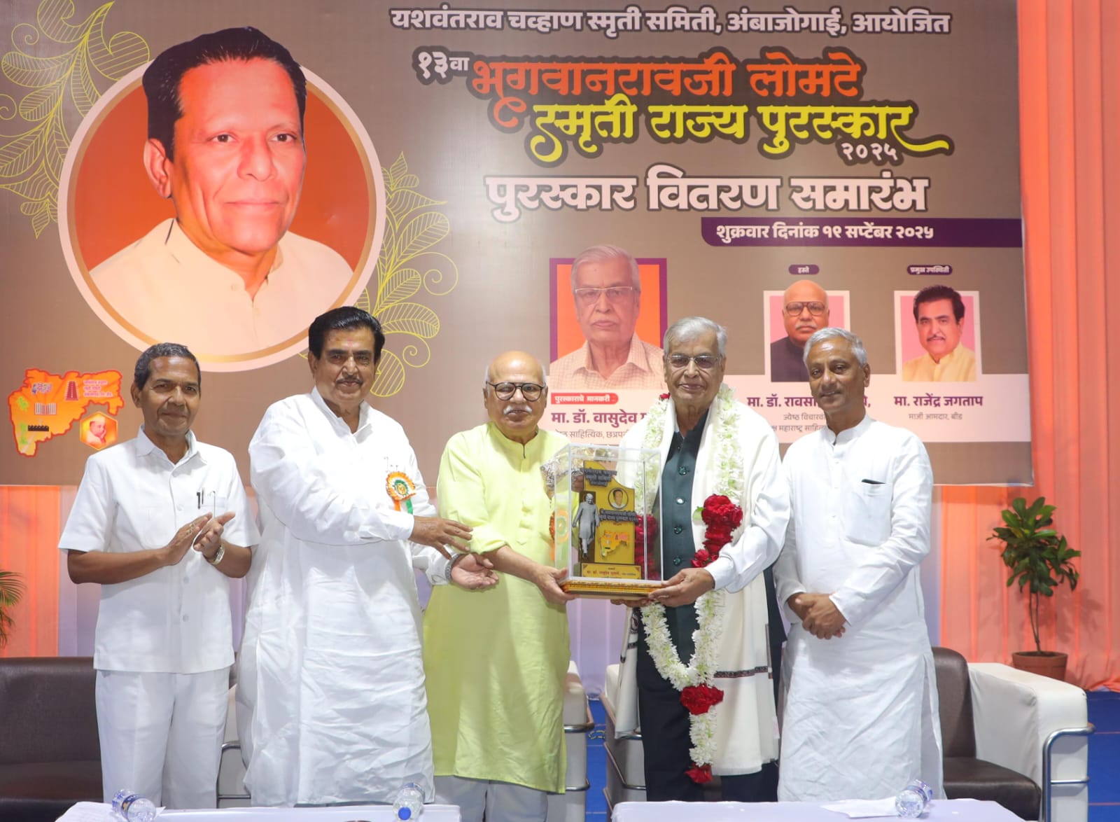 यशवंतराव चव्हाण स्मृती समितीच्या वतीने येथील आद्यकवी मुकुंदराज सांस्कृतिक सभागृहात आयोजित करण्यात आलेल्या भगवानराव लोमटे स्मृती राज्य पुरस्कार वितरण सोहळ्यात पुरस्कार स्विकारल्यानंतर व्यक्त करण्यात आलेल्या मनोगतात डॉ. वासुदेव मुलाटे बोलत होते. कार्यक्रमाच्या अध्यक्षस्थानी महाराष्ट्र साहित्य परिषदेचे अध्यक्ष डॉ. रावसाहेब कसबे तर प्रमुख अतिथी म्हणून माजी आमदार राजेंद्र जगताप हे उपस्थित होते.