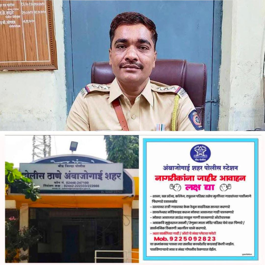 बीड जिल्ह्यासह अंबाजोगाई शहरातील बिघडलेली कायदा व सुव्यवस्था सुरळीत करण्यासाठी पोलीस निरीक्षक शरद जोगदंड यांनी पदभार घेतल्यापासून विविध प्रकारच्या मोहीम हाती घेतल्या असतानाच आता त्यांनी आपले लक्ष अंबाजोगाई शहरातील धन दांडग्यांच्या घरातील बिघडलेल्या आणि मस्तवाल पणे रस्त्यावर हुल्लडबाजी, टवाळगिरी करणाऱ्या मुलांना आणि त्यांच्या संगतीला लागून बिघडत चाललेल्या युवा पिढीला सरळ करण्यासाठी नवीन मोहीम हाती घेतले असून या मोहिमेमुळे शहरातील कायदा व सुव्यवस्था निश्चितपणे सुरळीत होण्यास मदत होणार आहे. अंबाजोगाई शहरातील नागरिकांच्या सुरक्षिततेसाठी शहर पोलिस ठाण्याच्या वतीने एक पत्रक काढून अत्यंत महत्त्वाचे आवाहन करण्यात आले आसुन या पत्रका मध्ये त्यांनी शाळा, कॉलेज, बसस्टँड, दुचाकी व चारचाकी परिसरात मुलींच्या गाड्यांच्या पाठीमागे फिरणारे टोळके, रात्री गाड्यांवर केक ठेवून वाढदिवस साजरे करणारे, सायलेंसर मॉडिफाय करून मोठा आवाज करत वाहन चालवणारे तरुण तसेच मोठ्या आवाजात साऊंड लावून गाणी वाजवणारे ऑटोचालक यांच्यावर कारवाईसाठी नागरिकांनी पोलिसांना माहिती द्यावी असे आवाहन करण्यात आले
