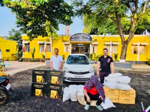 बीड जिल्हा पोलीस अधीक्षक नवनीत कावत यांनी जिल्ह्यातील अवैध धंद्यावर कडक कार्यवाही करण्याचे आदेश दिल्याने स्थानिक गुन्हे शाखेचे पोलीस निरीक्षक शिवाजी बंटेवाड यांच्या मार्गदर्शना खाली पो हवा रामचंद्र केकान, पोना गोविंद भताने यांची टीम दिनांक 8/10/2025 रोजी सकाळी सहा वाजण्याच्या सुमारास अंबाजोगाई शहर परिसरात पेट्रोलिंग करत असताना गोपनीय माहिती मिळाली की शहरातील गीता रोडवर एक इसम महाराष्ट्र राज्यात प्रतिबंधित असलेला गुटखा व पान मसाला एम एच 13 डी ई 95 17 या टाटा टिगोर या कार मध्ये घेऊन जात आहे, या गोपनीय माहितीच्या आधारे या टीम ने सापळा रचुन सदर कार चा पाठलाग करून छापा टाकला असता त्याच्या कार मधून वेगवेगळ्या कंपनीचा 6 लाख 75 हजार रुपयांचा पान मसाला व गुटखा जप्त केला आहे.